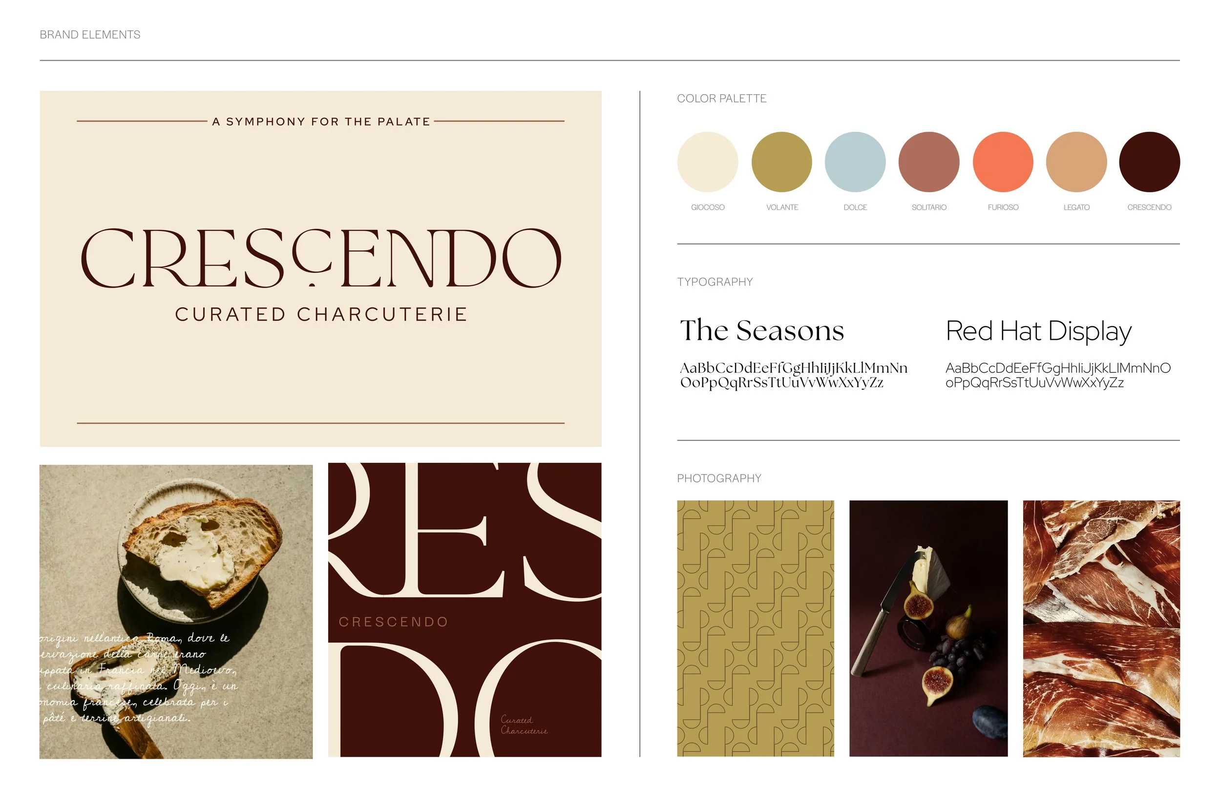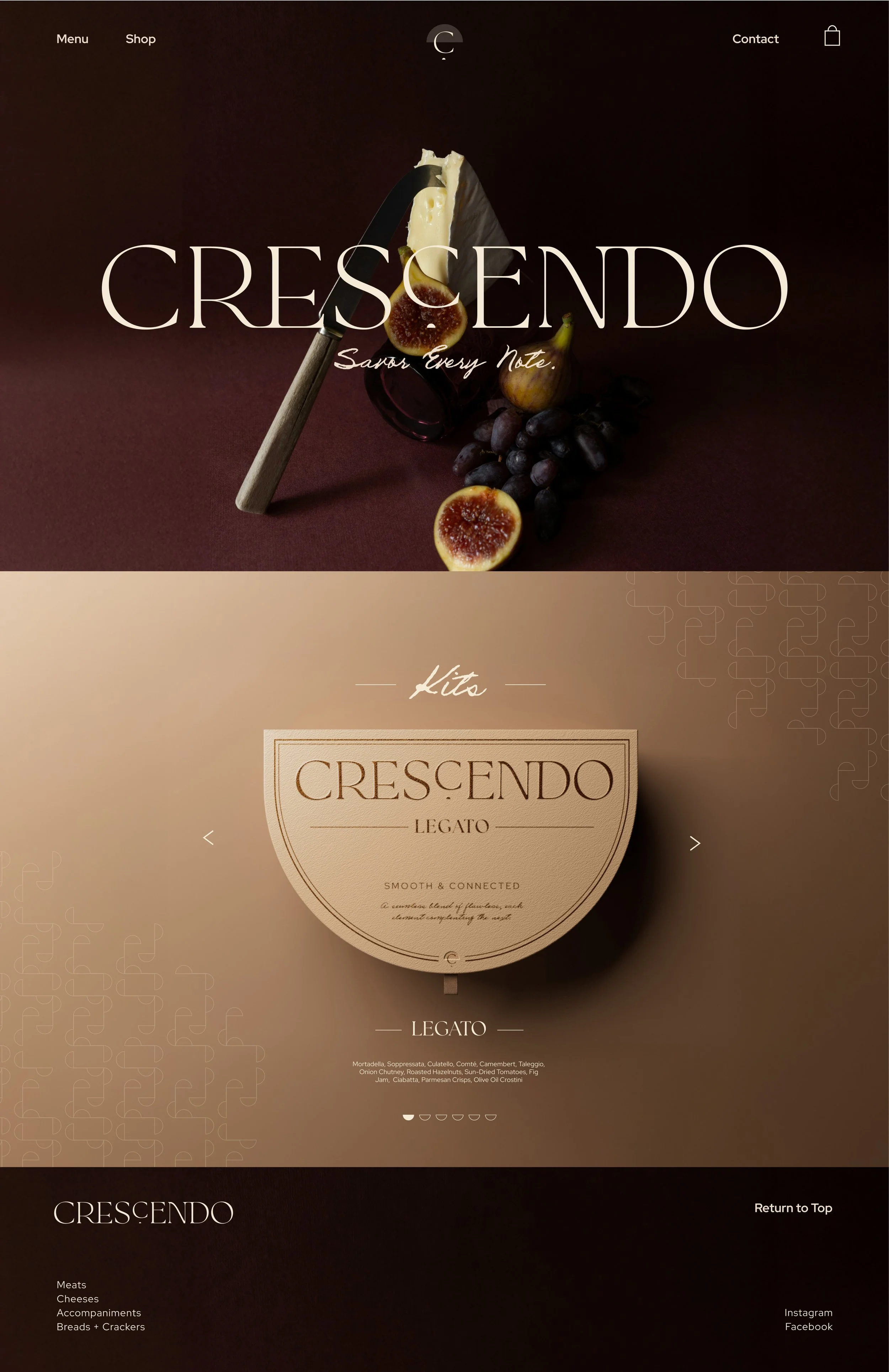 THE CHALLENGEThe Crescendo Collection began as a creative collaboration with our culinary and design teams, with the goal of redefining charcuterie through a more curated, sensory-driven lens. We set out to craft a cohesive family of kits that blended timeless ingredients with thoughtful composition, creating an experience that feels both elevated and approachable. Once the kits were finalized, our brand team developed a refined identity that seamlessly aligned with Crescendo’s story—balancing tradition, creativity, and mindful indulgence across packaging, marketing, and every customer touchpoint.