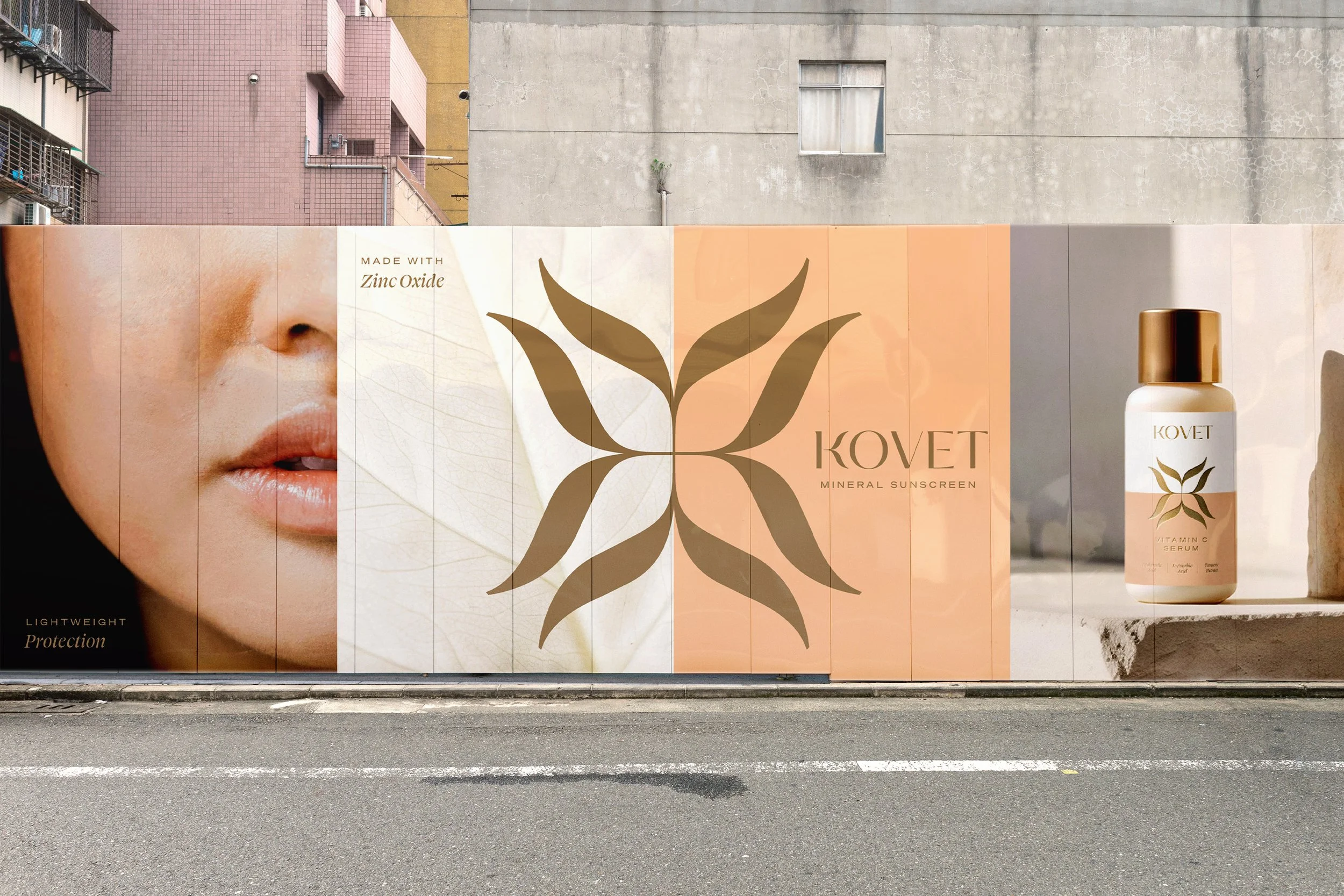 The design of the Kovet logo and visual identity embodies the brand’s dedication to natural beauty and sustainability, inspired by the clean, minimalist aesthetic of the product collection. This thoughtful approach led to a serene and cohesive visual identity system, where soft pastel tones and understated details reflect the purpose of each product line, ensuring a harmonious and impactful presence across packaging, marketing, and user experience.