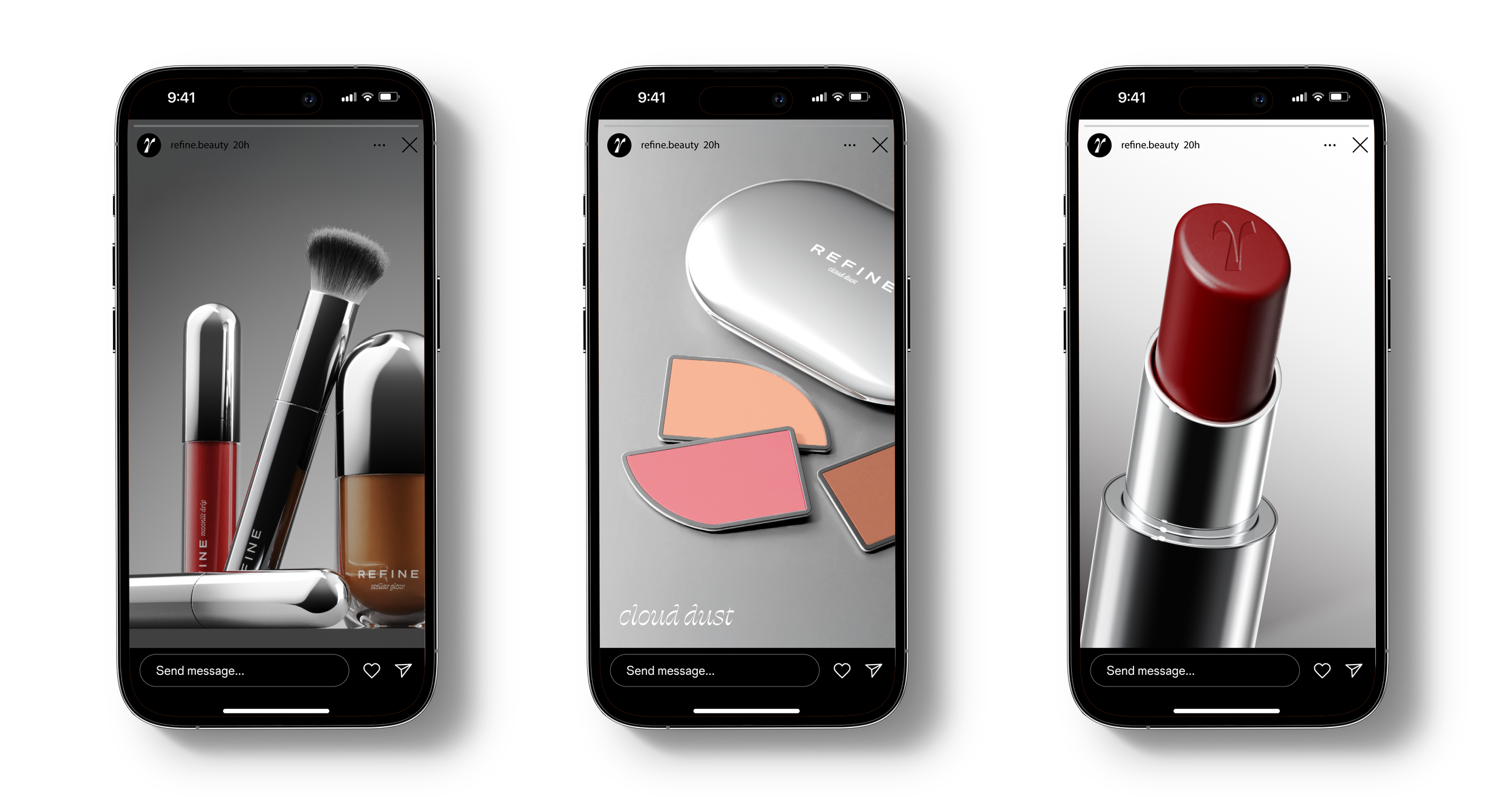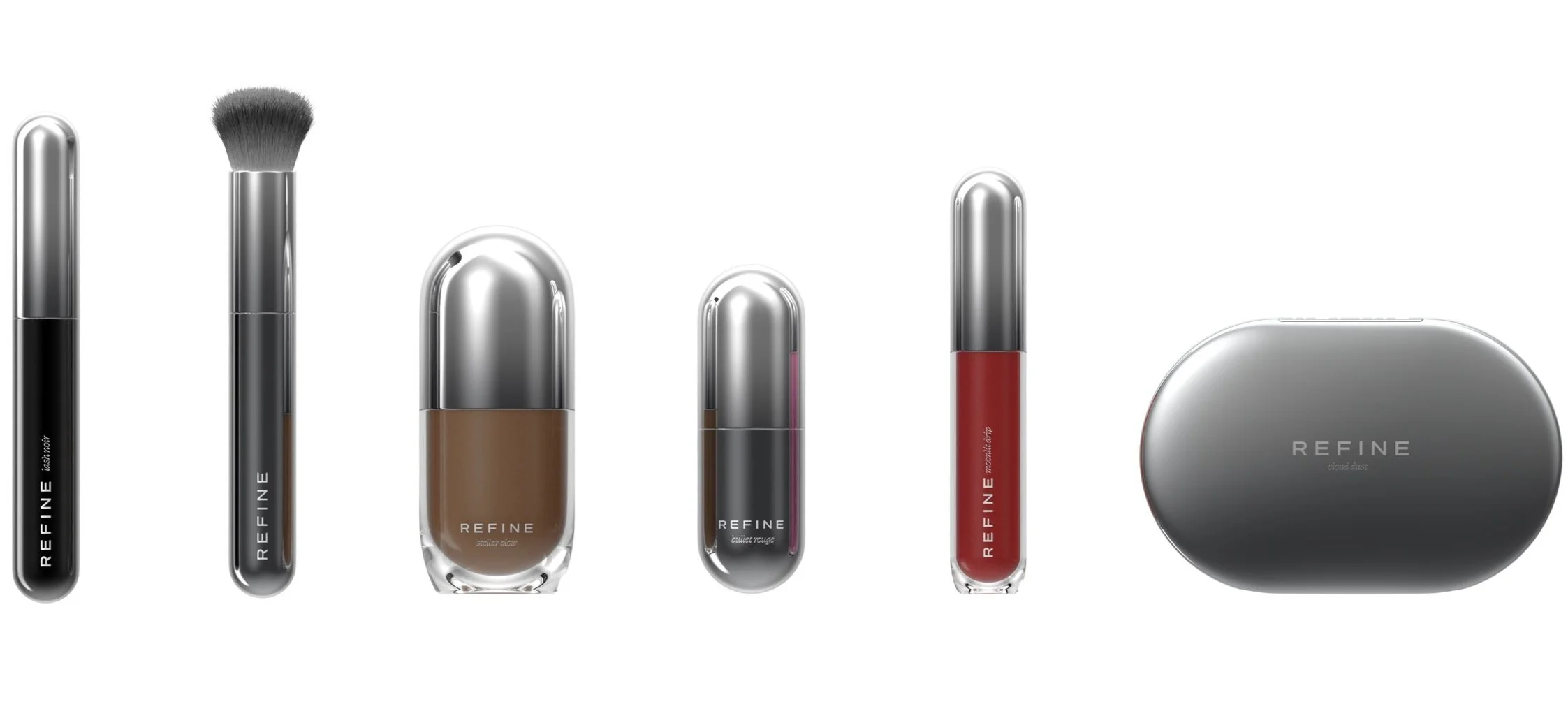 Extensive iterations of structural design have been undertaken to create a future-forward, sleek, and sophisticated style for the diverse design range of the Refine beauty brand.