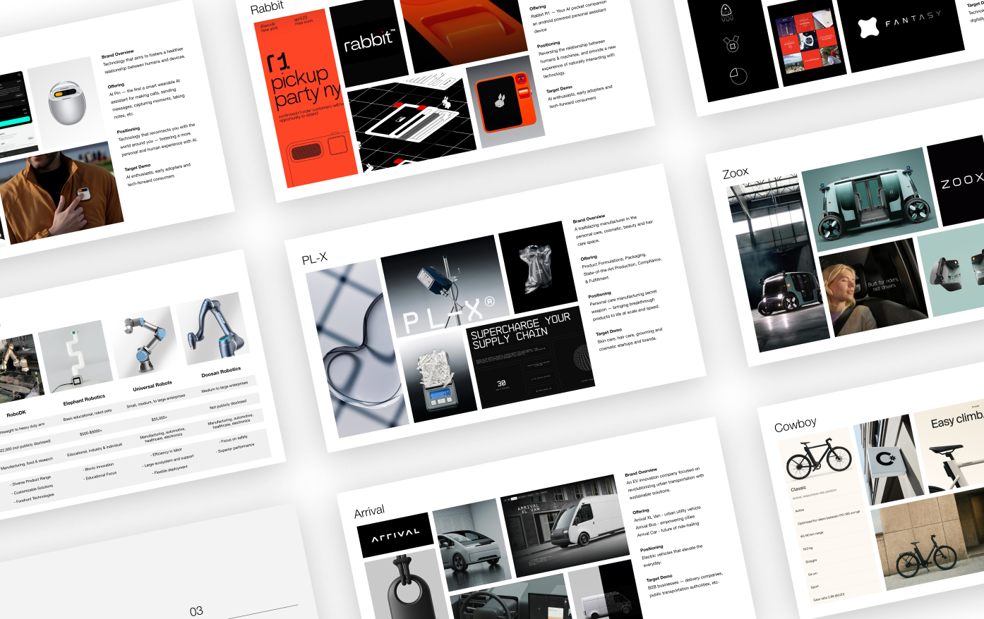 We analyzed five key industries within robotics, technology, and vehicles to identify leading innovators and extract insights for shaping the X-Arm brand. The objective was to define the core principles of advanced engineering and user-focused design, applying those insights to craft a bold, modern, and versatile visual identity for X-Arm.
