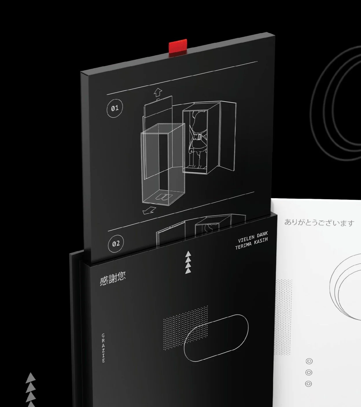 OPENING EXPERIENCEWe thoughtfully designed the box to create a dynamic and layered opening experience with just enough suspense and intrigue to keep YouTubers engaged and warrant turning their unboxing into content for their channel. The outermost box is a slipcase alternating white and black panels—an unexpected spin on traditional white and black tech product packaging.